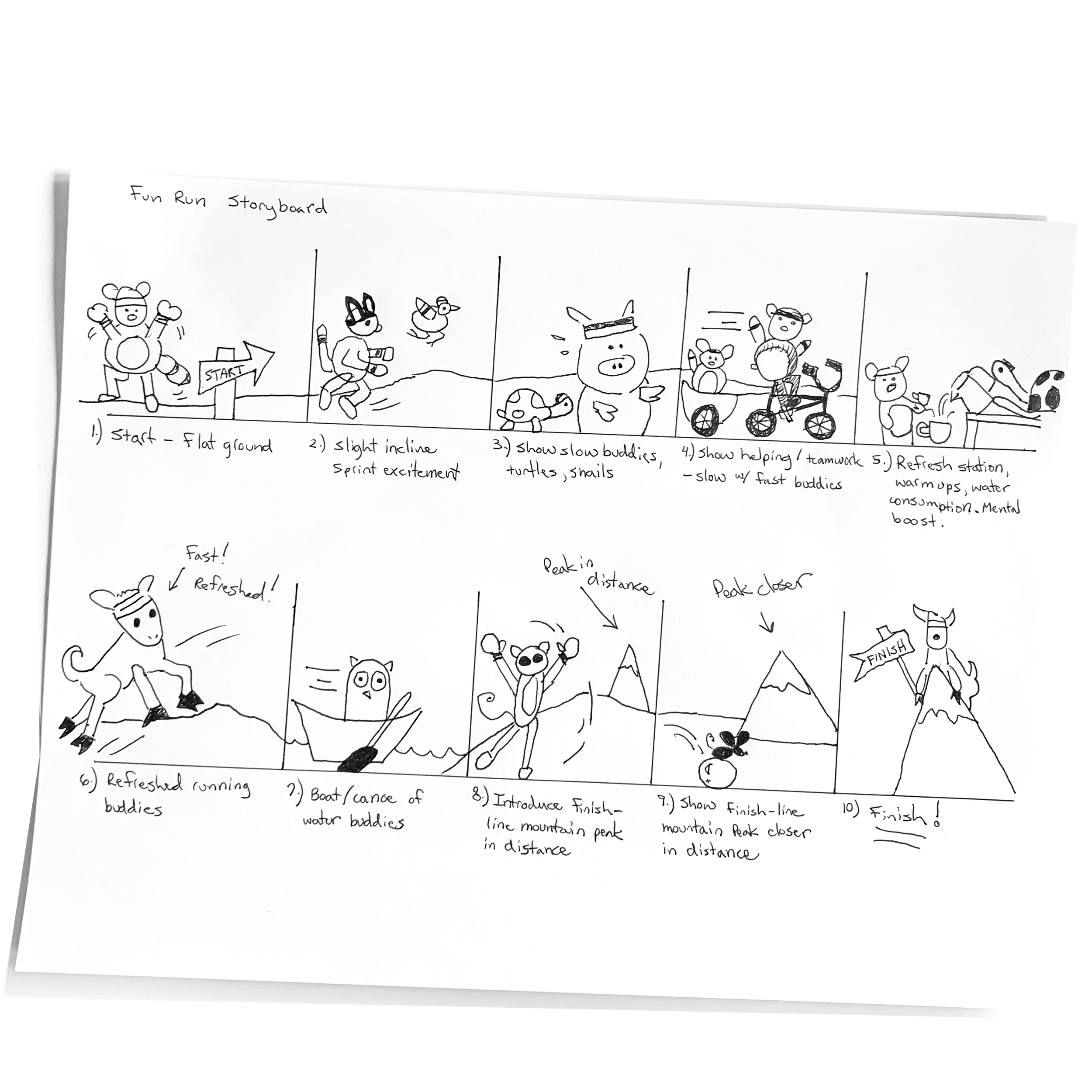The Creative Team was tasked with a tight deadline for a sweepstakes titled, “The Fun Run”. It was my responsibility to come up with the visual direction, story boards, and desirable prizes for the 10 week ‘sprint’ campaign.